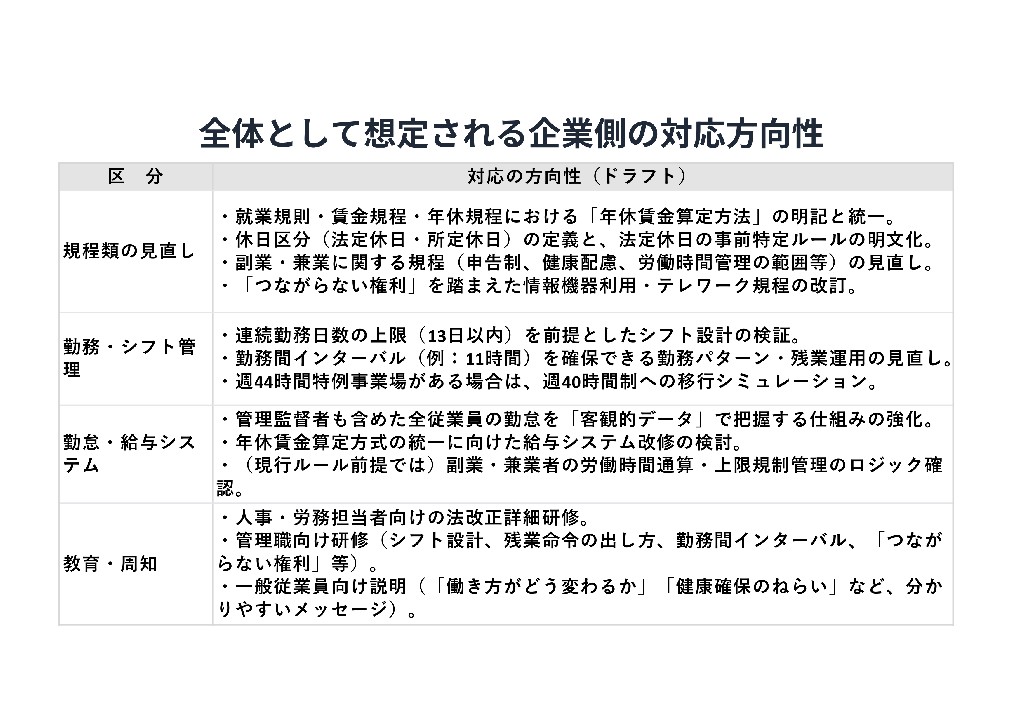 想定される企業側の対応の方向性